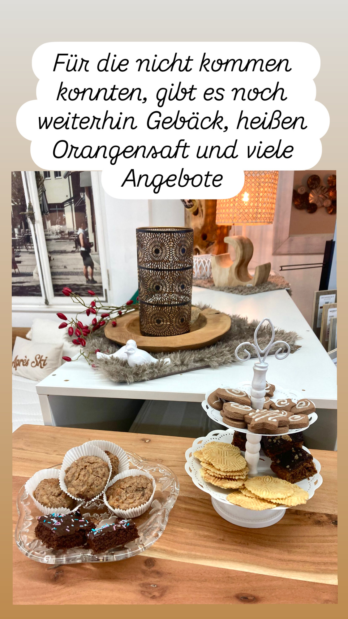 Es gibt noch weiterhin selbstgemachtes Gebäck und heißen Orangensaft.